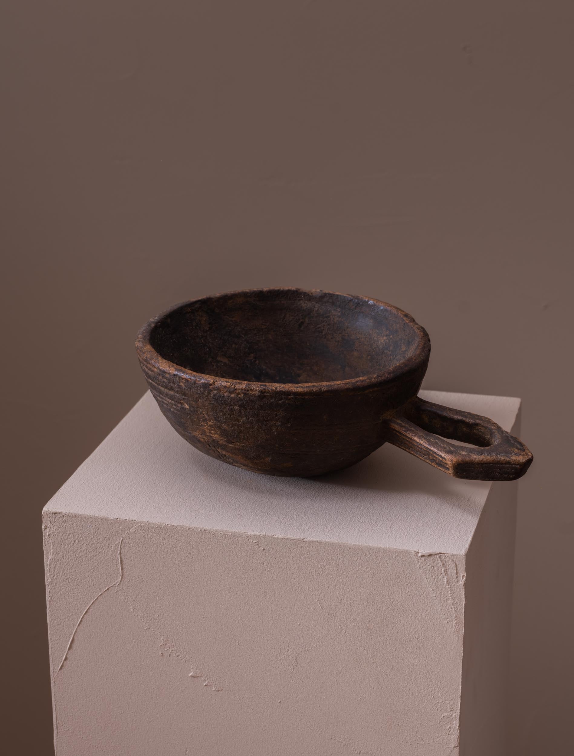 Antique African hand carved wooden milk bowl with handle.