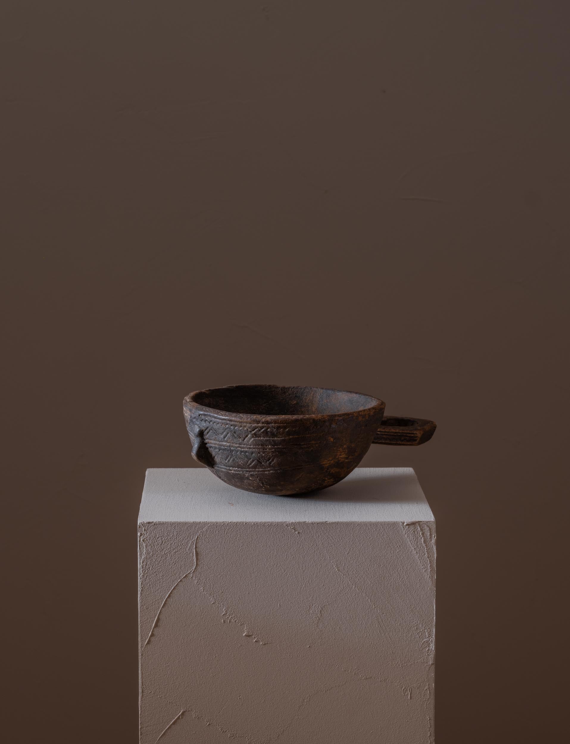 Decorated with finely grooved zig-zag etchings characteristic of the Touraeg people of the sahara region.